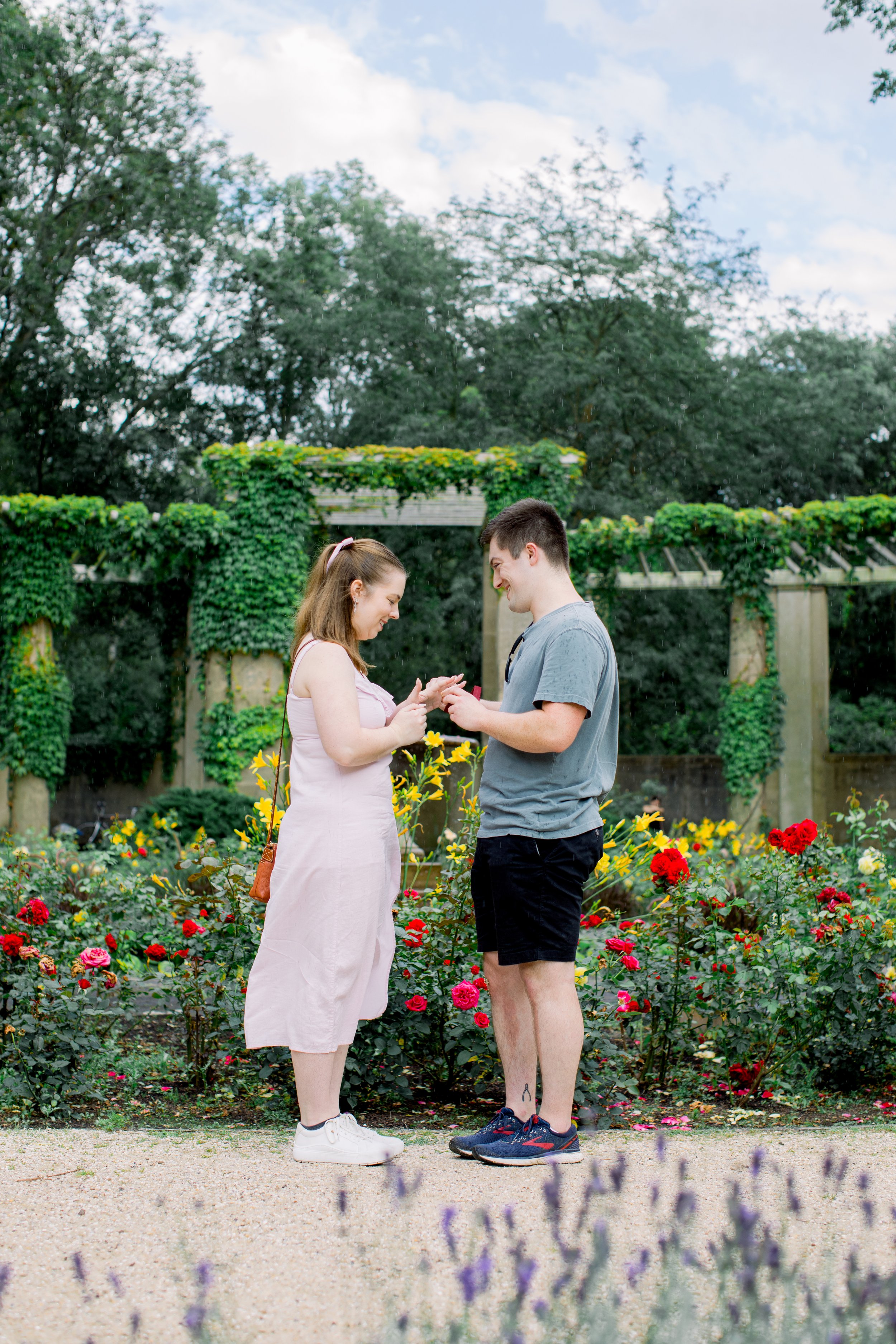 We will keep a close eye on the weather forecast and prepare logistics accordingly. Being proposed on a rainy day can be uniquely romantic with the right plan B: Bringing an umbrella, moving to a sheltered spot, or simply embracing the weather.